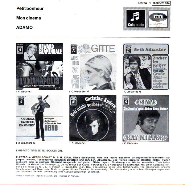 Vinyl / Adamo - Petit Bonheur / Mon Cinema