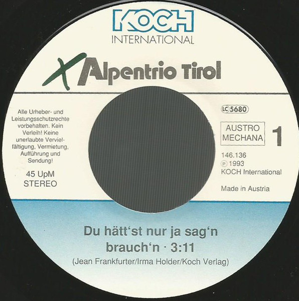 Vinyl / Alpentrio Tirol - Du Hätt'st Nur Ja Sag'n Brauch'n