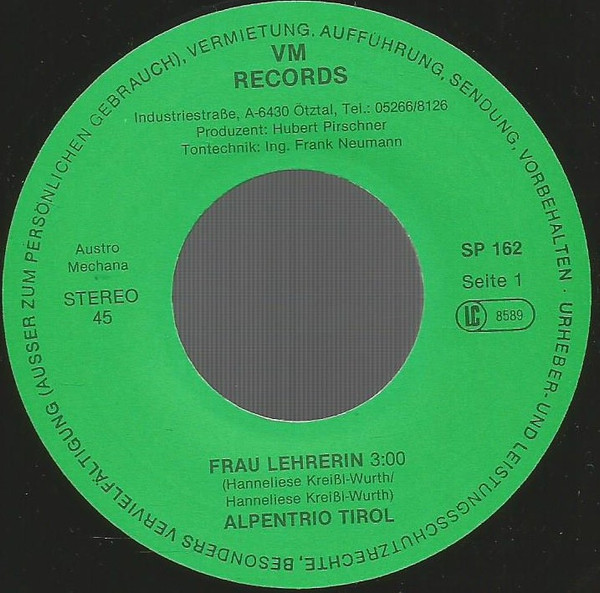 Vinyl / Alpentrio Tirol - Frau Lehrerin