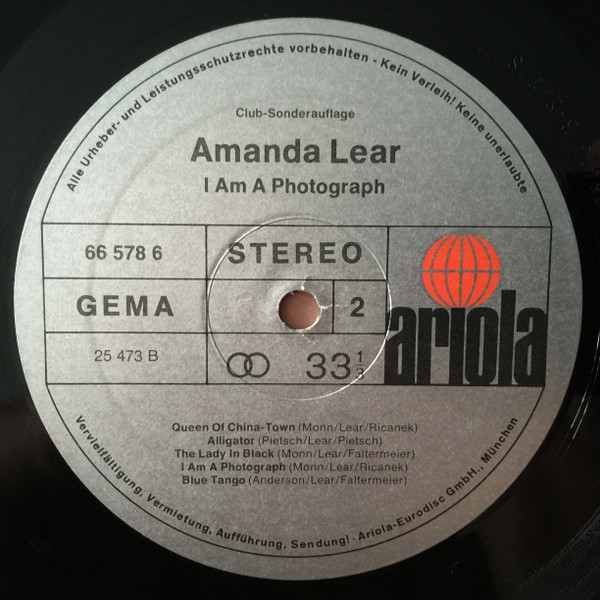 Vinyl / Amanda Lear - I Am A Photograph
