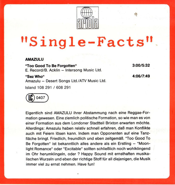 Vinyl / Amazulu - Too Good To Be Forgotten