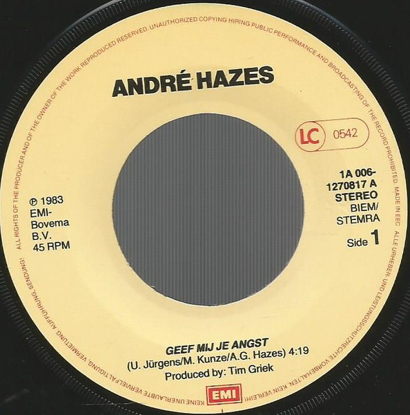 Vinyl / André Hazes - Geef Mij Je Angst