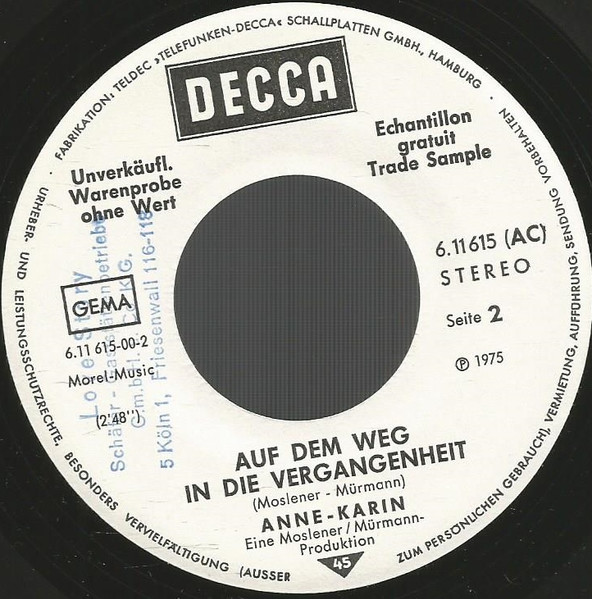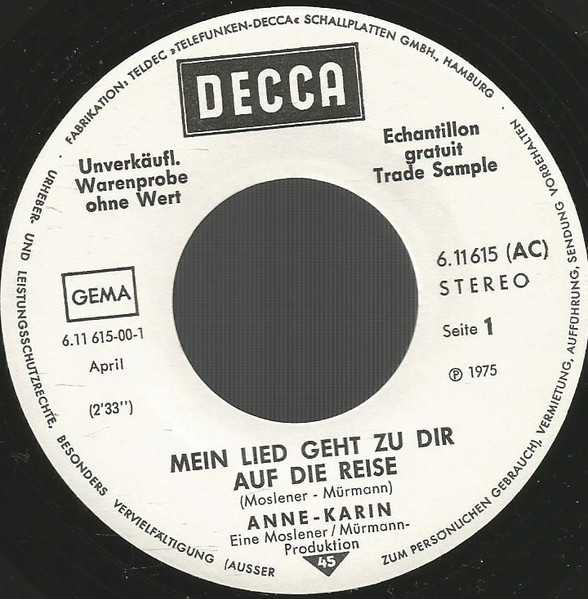 Vinyl / Anne Karin - Mein Lied Geht Zu Dir Auf Die Reise