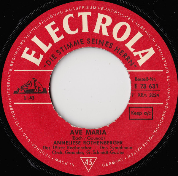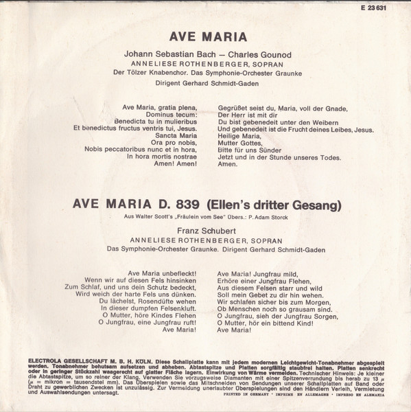 Vinyl / Anneliese Rothenberger / Bach* - Gounod* Und Franz Schubert - Ave Maria
