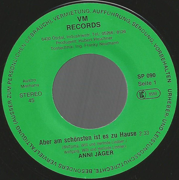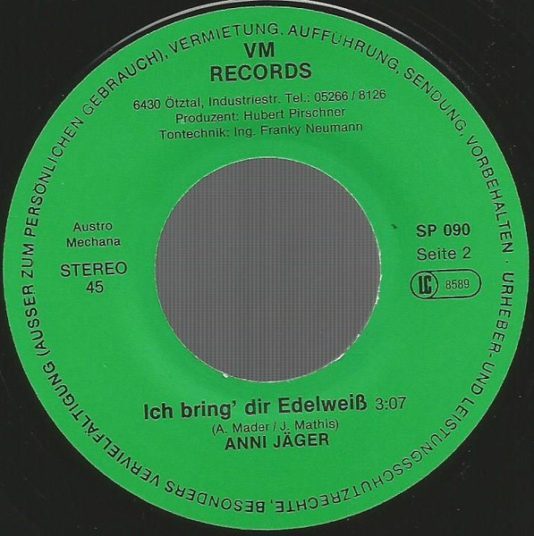 Vinyl / Anni Jäger - Aber Am Schönsten Ist Es Zu Hause / Ich Bring' Dir Edelweiß