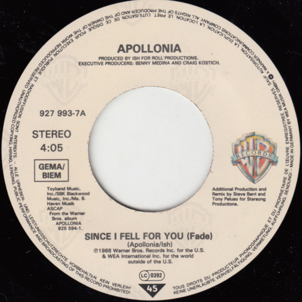Vinyl / Apollonia - Since I Fell For You