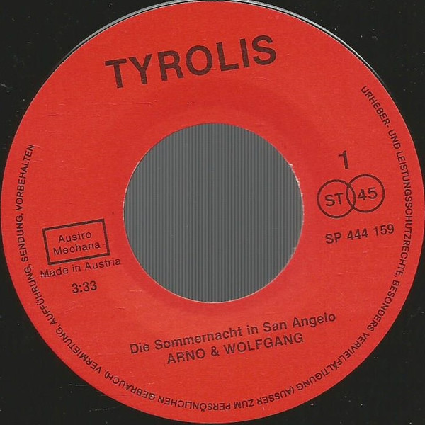 Vinyl / Arno & Wolfgang - Die Sommernacht In San Angelo / Komm Mit Mir In Den Urlaub