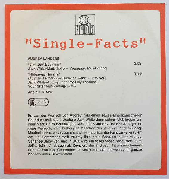 Vinyl / Audrey Landers - Jim, Jeff & Johnny