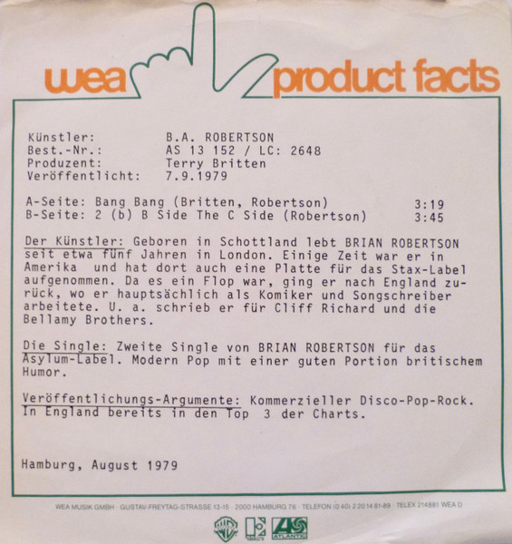 Label: Asylum Records - Cat#: AS 13 152