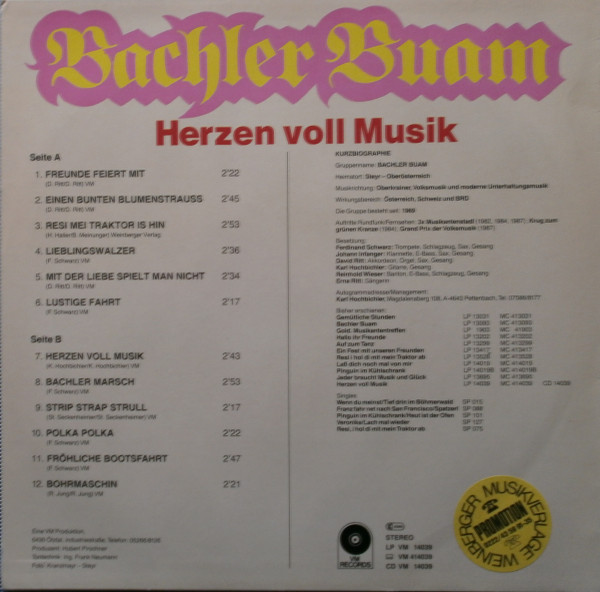 Vinyl / Bachler Buam - Herzen Voll Musik