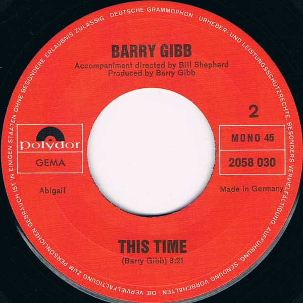 Vinyl / Barry Gibb - I'll Kiss Your Memory / This Time