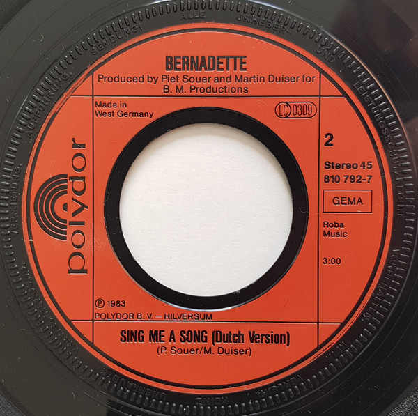 Vinyl / Bernadette (2) - Sing Me A Song