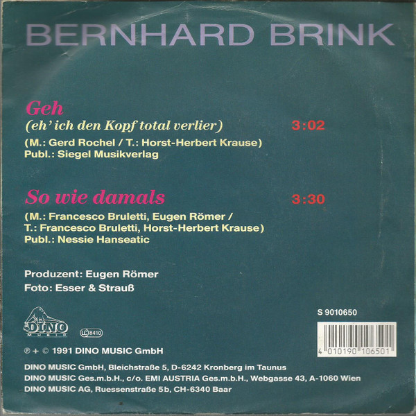 Vinyl / Bernhard Brink - Geh (Eh' Ich Den Kopf Total Verlier)
