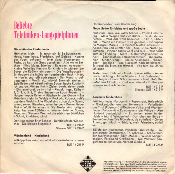 Vinyl / Bielefelder Kinderchor* - Schlafe, Mein Prinzchen Schlaf Ein / Wiegenlied