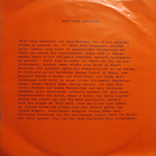 Vinyl / Big Pete Lancaster - Mack The Knife / Happy Gipsy