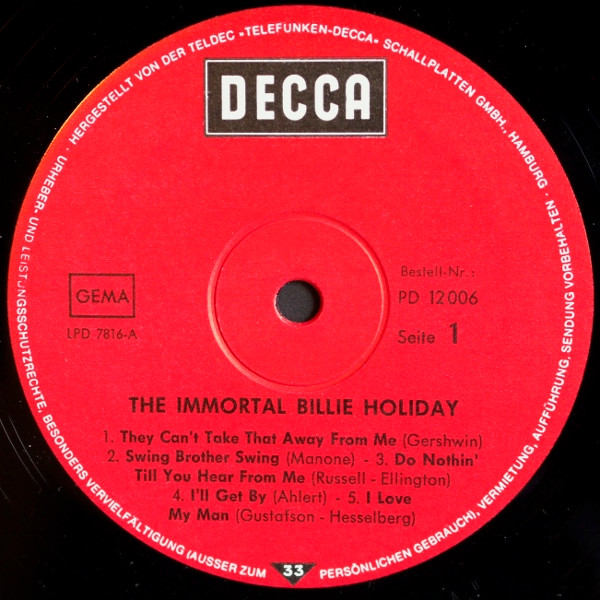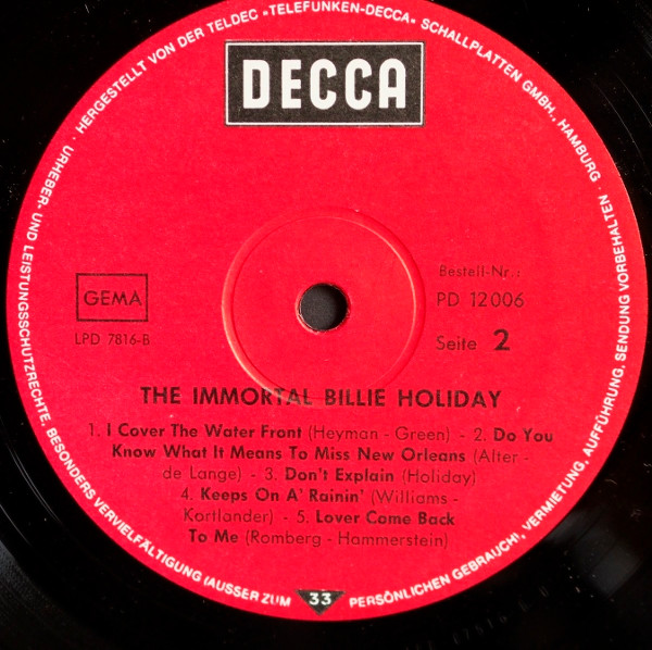 Vinyl / Billie Holiday - The Immortal Billie Holiday - Jazz Of World War 2nd