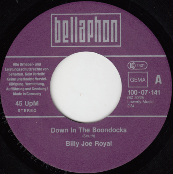 Vinyl / Billy Joe Royal / Buddy Knox - Down In The Boondocks / Hula Love