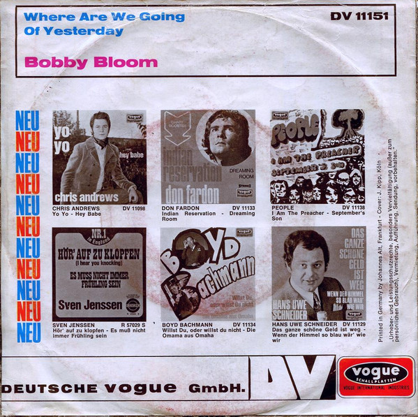 Vinyl / Bobby Bloom - Where Are We Going / Of Yesterday
