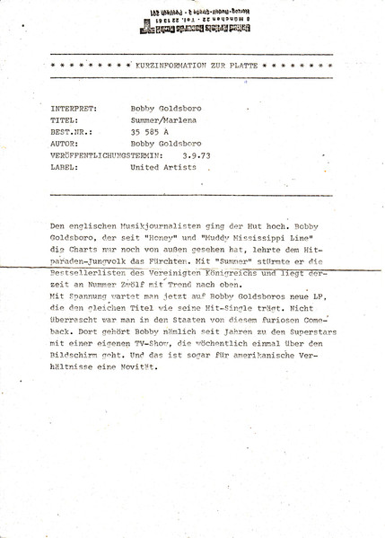 Vinyl / Bobby Goldsboro - Summer (The First Time)