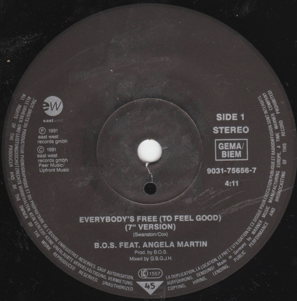 Vinyl / B.O.S. Feat. Angela Martin - Everybody's Free (To Feel Good)