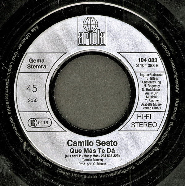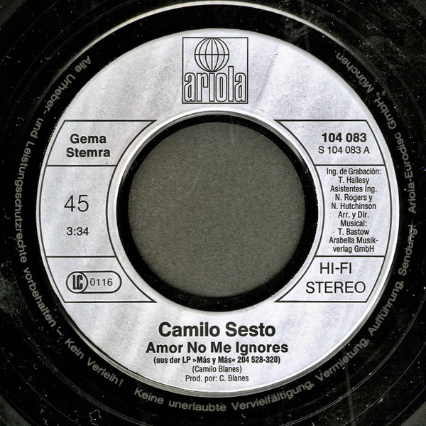 Vinyl / Camilo Sesto - Amor No Me Ignores / Que Mas Te Da