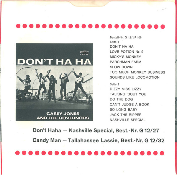 Vinyl / Casey Jones And The Governors* - Jack The Ripper / So Long Baby