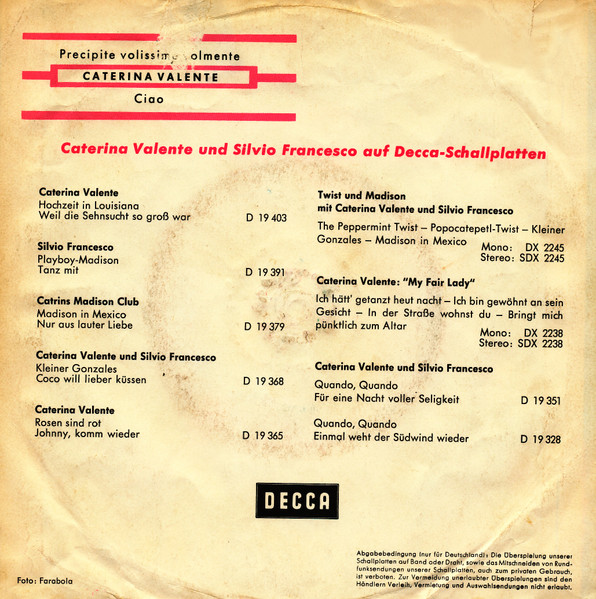 Vinyl / Caterina Valente - Ciao / Precipite Volissime Volmente