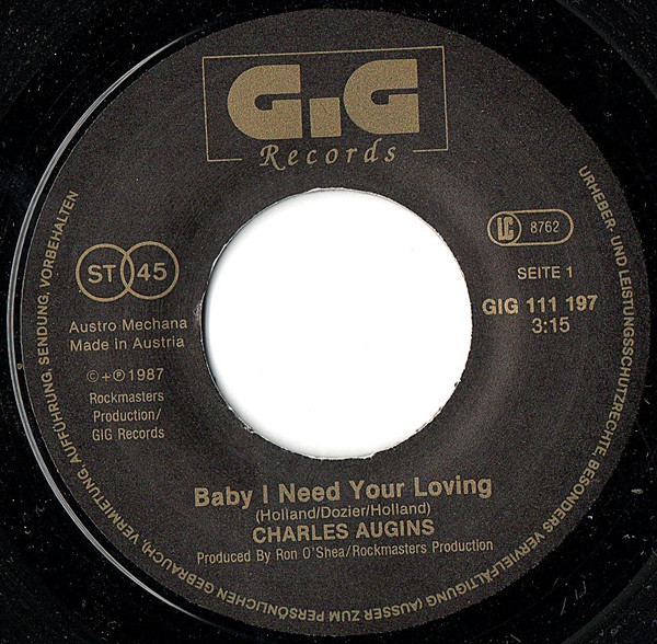 Vinyl / Charles Augins - Baby I Need Your Loving
