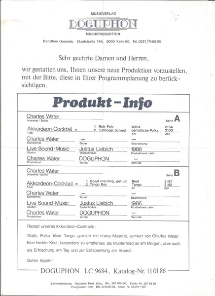 Vinyl / Charles Water - Akkordeon-Cocktail