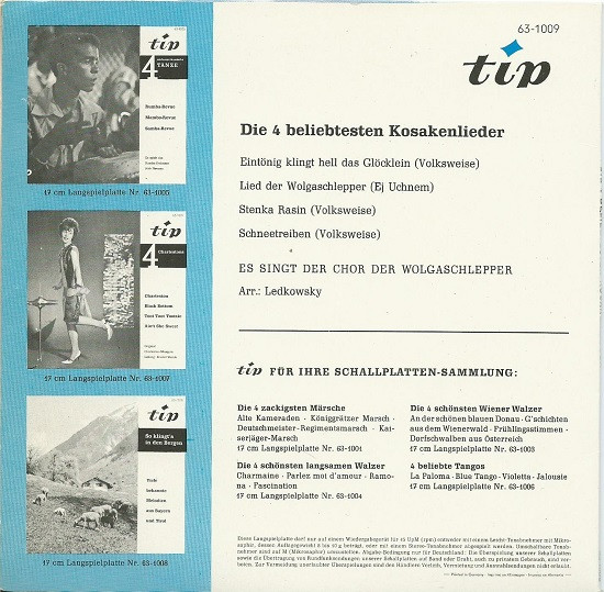 Vinyl / Chor Der Wolgaschlepper - Die 4 Beliebtesten Kosakenlieder