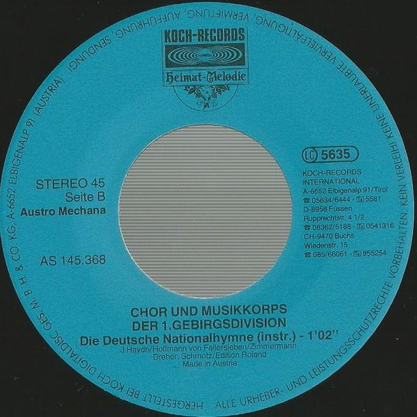 Vinyl / Chor Und Musikkorps Der 1. Gebirgsdivision* - Deutsche Nationalhymne