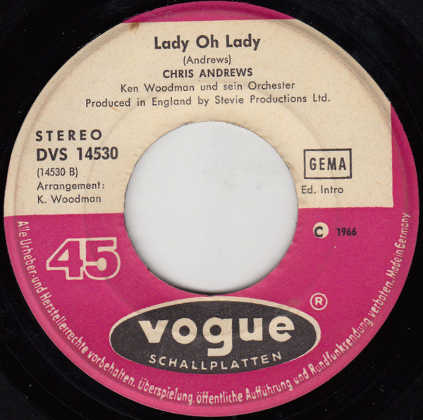 Vinyl / Chris Andrews (3) - Something On My Mind / Lady Oh Lady