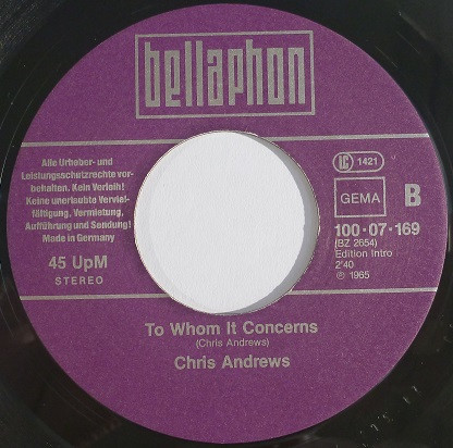 Vinyl / Chris Andrews (3) - Yesterday Man / To Whom It Concerns