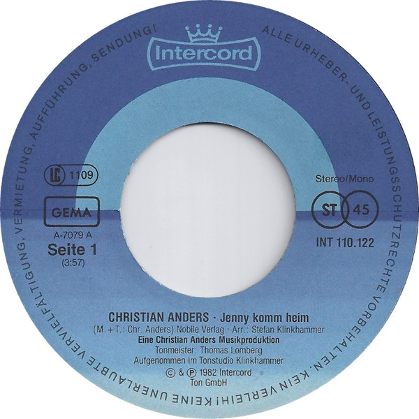 Vinyl / Christian Anders - Jenny Komm Heim