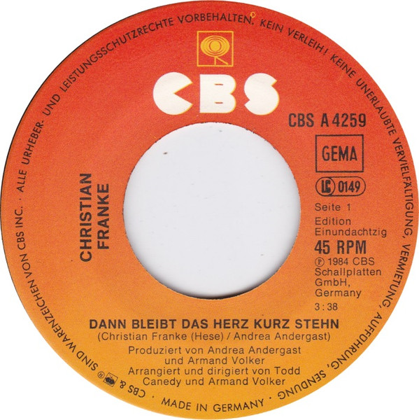 Vinyl / Christian Franke - Dann Bleibt Das Herz Kurz Stehn