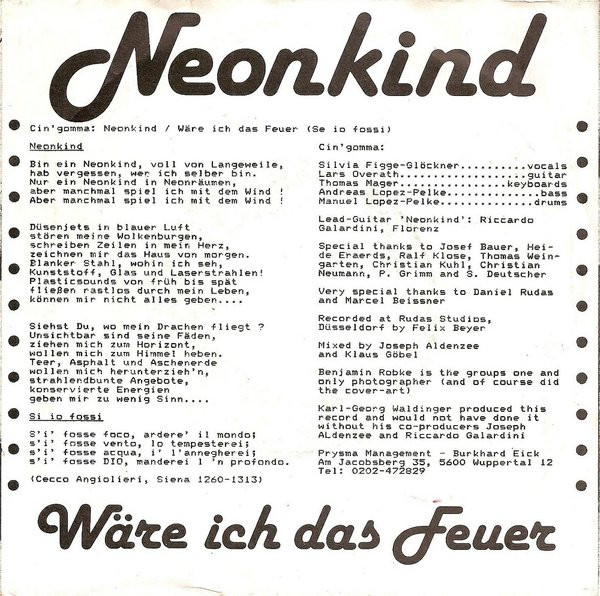 Vinyl / Cin'gomma - Neonkind / Wäre Ich Das Feuer