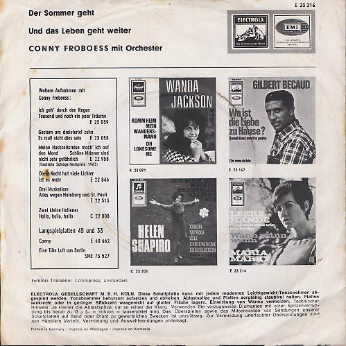 Vinyl / Conny Froboess - Der Sommer Geht / Und Das Leben Geht Weiter