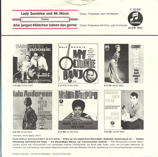 Vinyl / Conny* - Lady Sunshine Und Mr. Moon / Alle Jungen Mädchen Haben Das Gerne