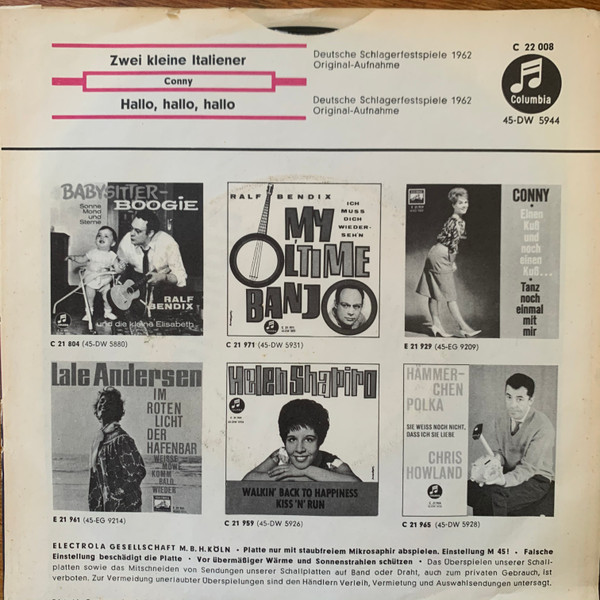 Vinyl / Conny* - Zwei Kleine Italiener / Hallo, Hallo, Hallo