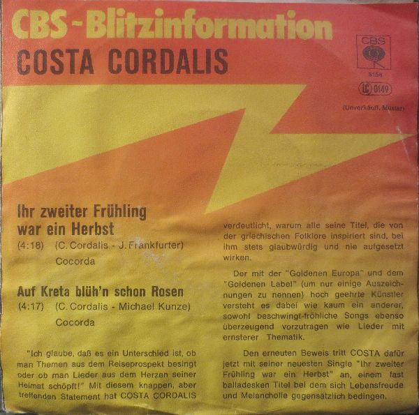 Vinyl / Costa Cordalis - Ihr Zweiter Frühling War Ein Herbst