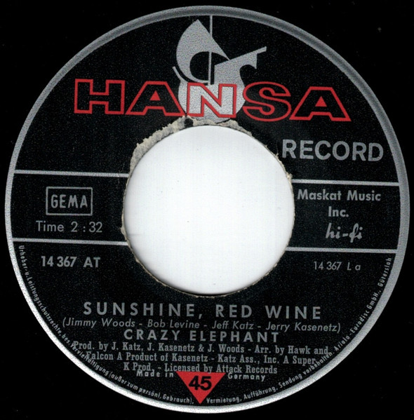 Vinyl / Crazy Elephant - Sunshine, Red Wine