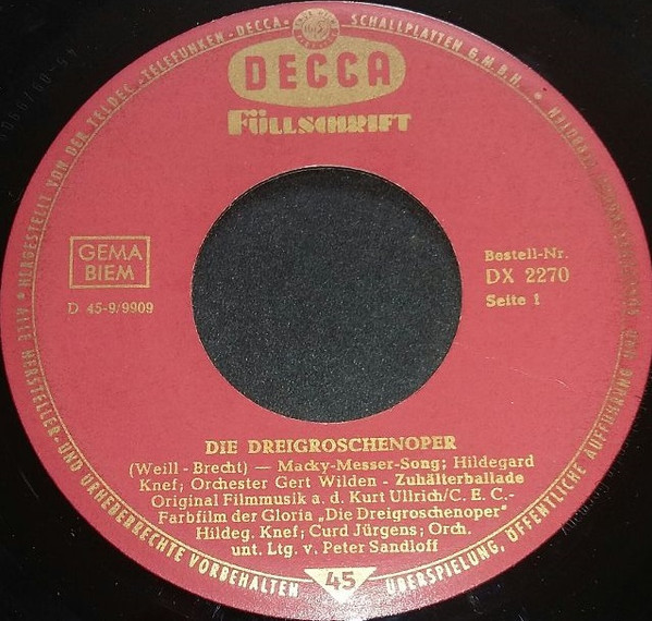Vinyl / Curd Jürgens, Hildegard Knef, Gert Fröbe - Die Dreigroschenoper
