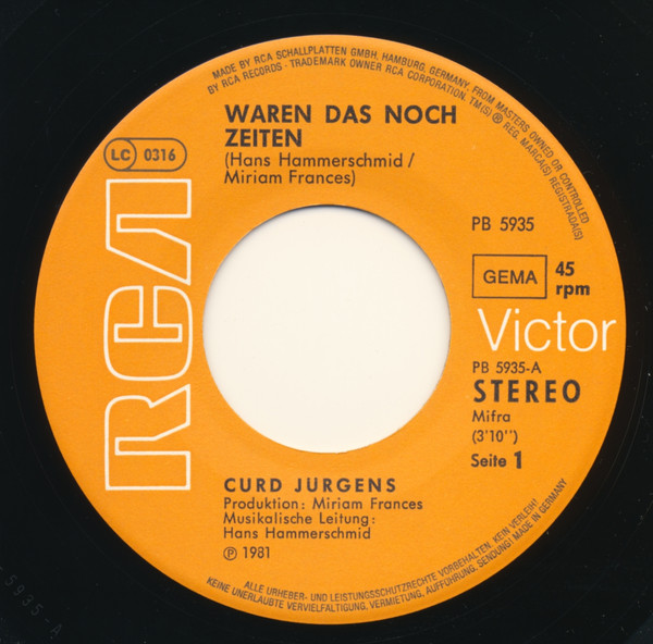 Vinyl / Curd Jürgens - Waren Das Noch Zeiten
