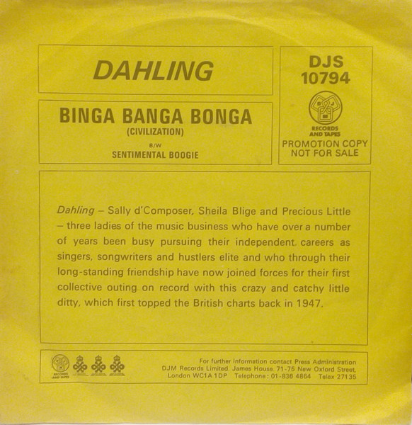 Vinyl / Dahling (2) - Binga Banga Bonga (Civilization) / Sentimental Boogie
