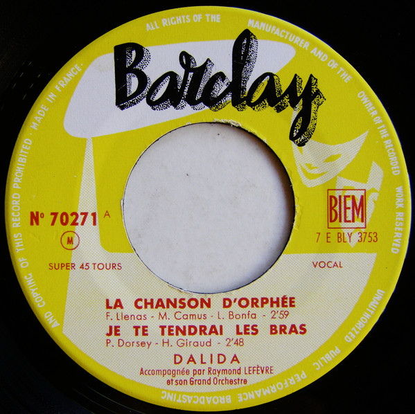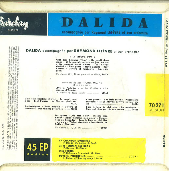 Vinyl / Dalida Accompagnée Par Raymond Lefèvre Et Son Grand Orchestre - La Chanson D'Orphée