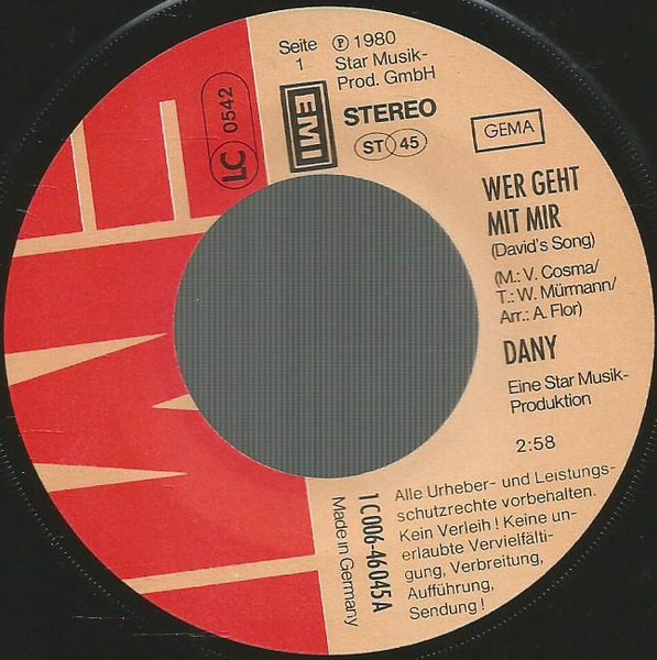 Vinyl / Dany (9) - Wer Geht Mit Mir? (David's Song) / Amory