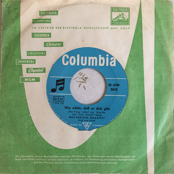 Vinyl / Das Hansen-Quartett - Beim Zärtlichen Blues / Wie Schön, Daß Es Dich Gibt