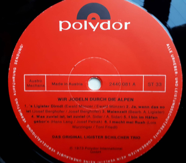 Vinyl / Das Original Ligister Schilcher Trio* - Wir Jodeln Durch Die Alpen