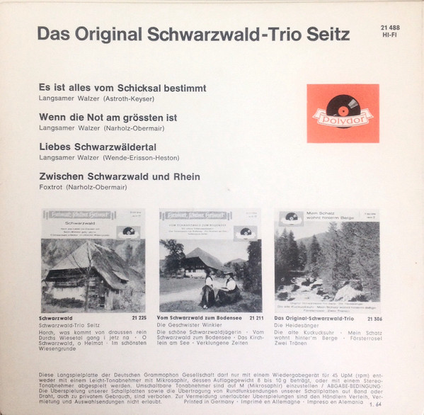 Vinyl / Das Original Schwarzwald-Trio Seitz - Das Original Schwarzwald-Trio Seitz