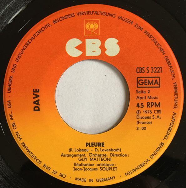 Vinyl / Dave (13) - Mon Cœur Est Malade / Pleure
